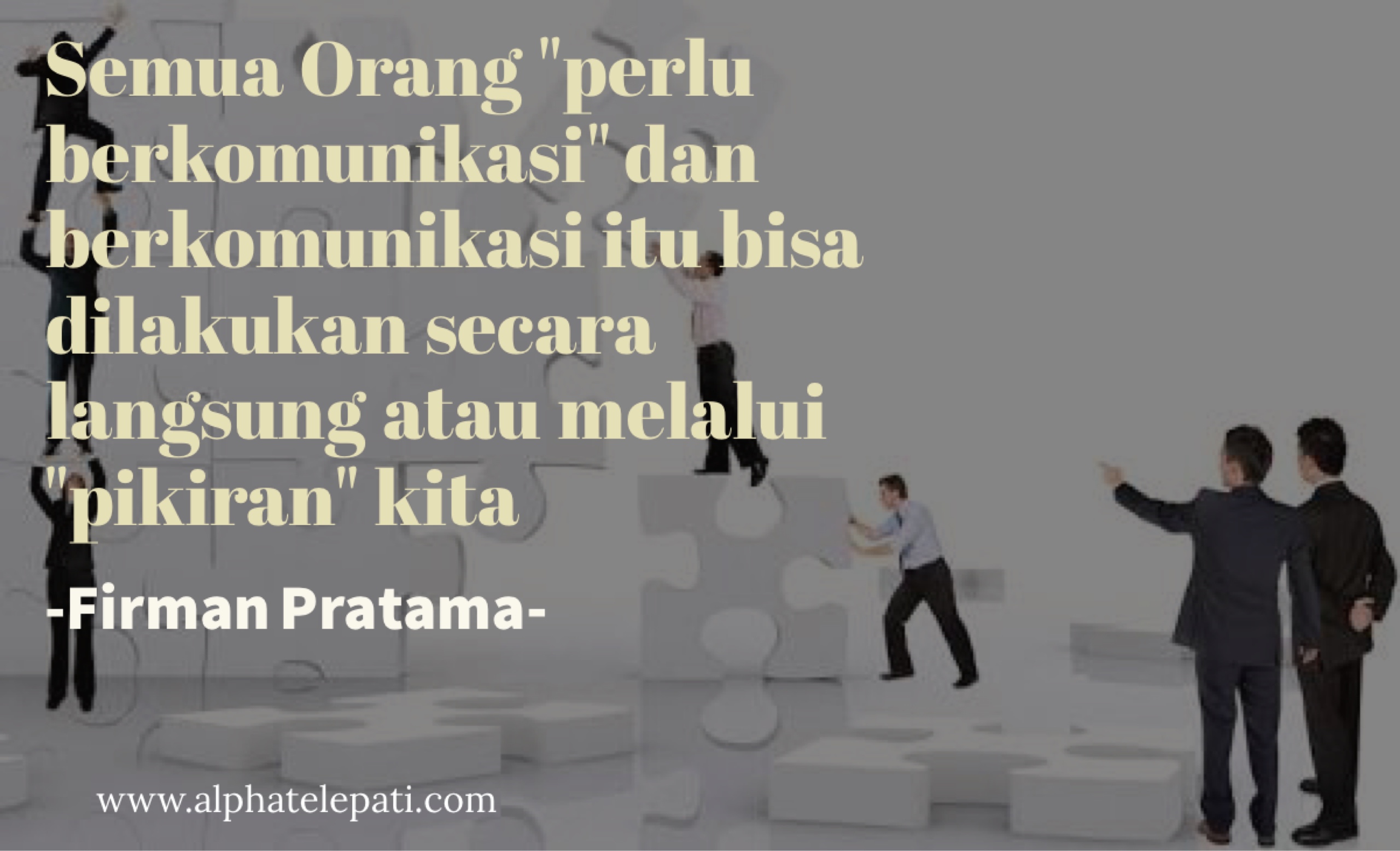 Ibu ini menjawab “bisa gitu ya mas, dia mengerjakan keinginan kita sendiri ya, bagus deh mas kalau gitu saya mau mesan ya”. Saya lanjukan “iya memang seperti itu bu manfaat alpha telepati”. Selama ini memang kita hanya diberi tahu bahwa komunikasi itu harus berbicara, harus bertemu langsung, padahal tidak lho. Bisa juga komunikasi untuk mempengaruhi orang lain kita lakukan tanpa bertemu langsung, ya dengan Alpha Telepati.
