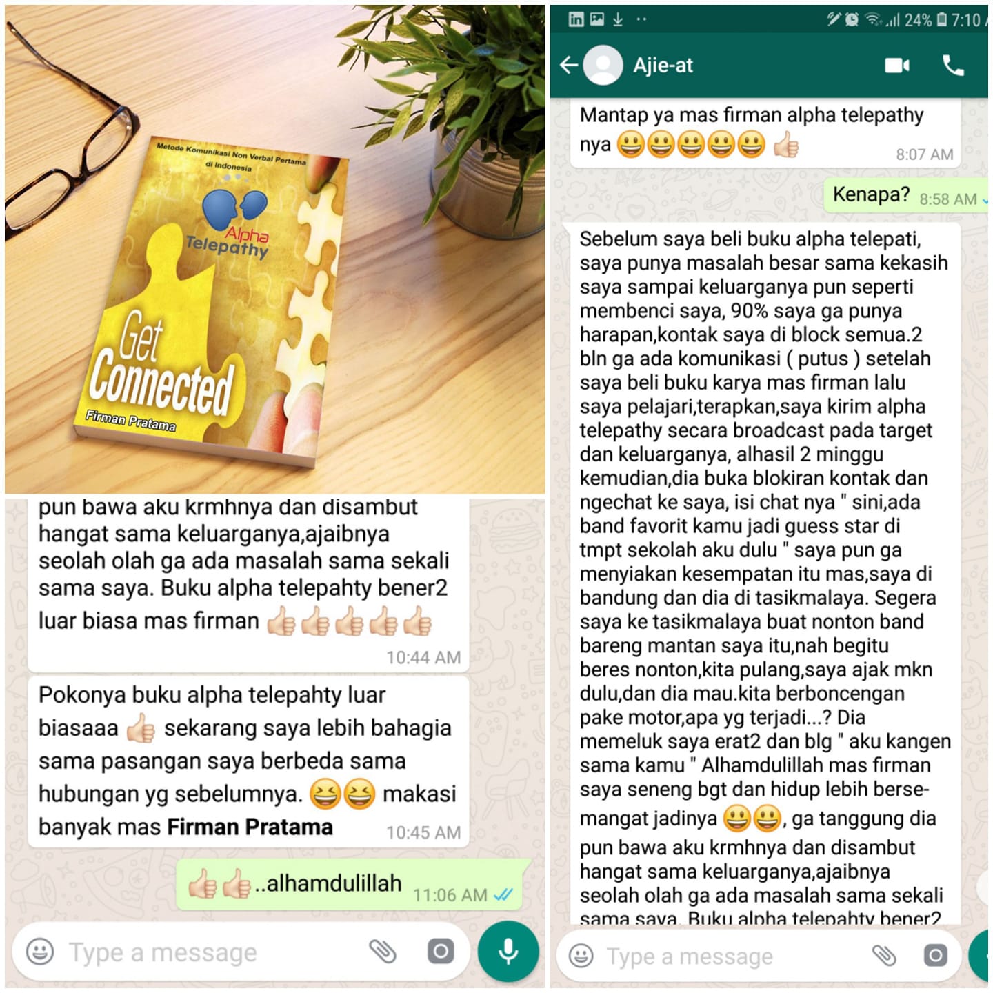 Setelah kamu dan pasangan selalu menjaga pikiranmu untuk tetap positif maka langkah penting yang ketiga adalah kamu bisa menggunakan teknik alpha telepati. Seperti salah satu testimoni berikut ini.