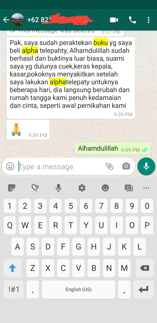 Dibutuhkan sebuah cara untuk mempengaruhi pikiran suami supaya benar-benar berubah. Dan itu dengan menggunakan rumus alpha telepati. Seperti pengalaman istri yang sudah membaca buku alpha telepati. Dia bahagia karena suaminya sekarang berubah total seperti saat di awal pernikahan. Alpha telepati adalah metode yang memang sudah terbukti untuk mempengaruhi pikiran orang lain tanpa perlu capek berbicara, tanpa perlu berdebat. Istilah kerennya langsung tembak ke sasaran utama yaitu di Pikirannya.
